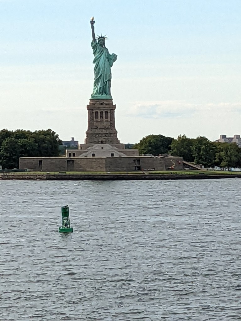 The last views of New York were from our aft-facing cabin, looking backward at the harbor. These are the required photos: Statue of Liberty from the ship, the tug boat, and the absolutely gorgeous skyline on a beautiful day.
