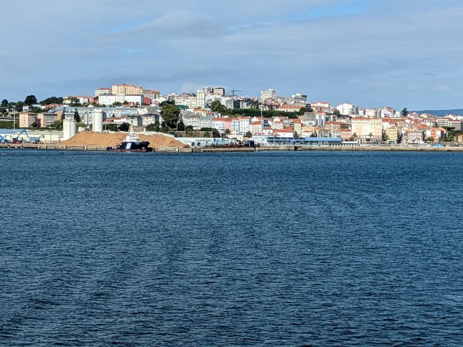 I chose not to visit this medium-size Spanish town, whose primary tourist attraction is its naval base, huge shipyard and proximity to the Camino de Santiago walk. Instead, I enjoyed total solitude on our sunlit deck, listening to gulls and watching small single-person rowboats quietly fishing for squid. Bob checked out the shipyard, and was suitably impressed with the 600-foot drydock and the sad story that joining the EU resulted in the closure of that shipbuilding business and the subsequent layoff of 40,000 workers. The town is struggling to become a tourist destination, but it’s not there yet.